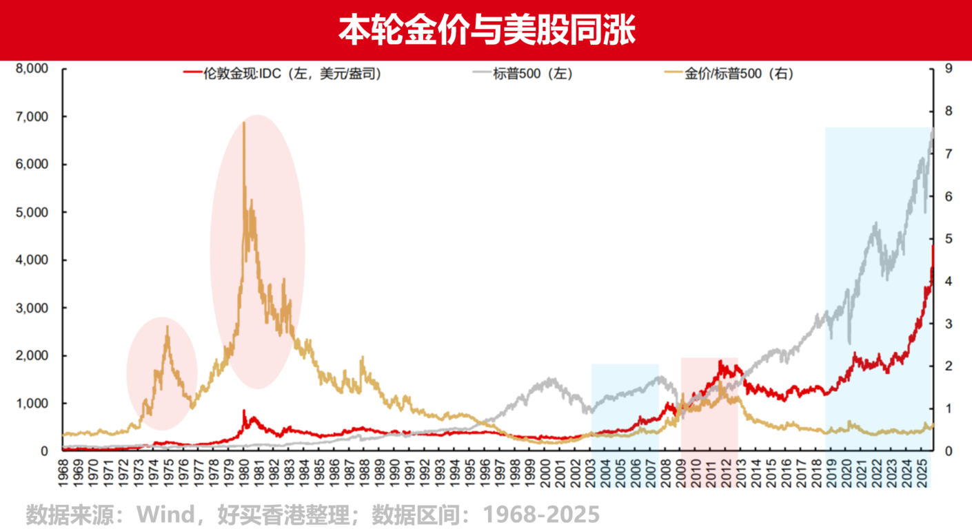 黃金與風險資產(chǎn)“罕見同漲”:黃金與美股,這對投資世界的“蹺蹺板”首次實現(xiàn)了歷史性的同步上揚。一方面,美元走弱同時利好以美元計價的黃金和美國企業(yè)海外盈利;另一方面,美聯(lián)儲的預(yù)防式降息,釋放的充裕流動性與黃金的抗通脹屬性產(chǎn)生共振,共同托起了風險與避險資產(chǎn)。